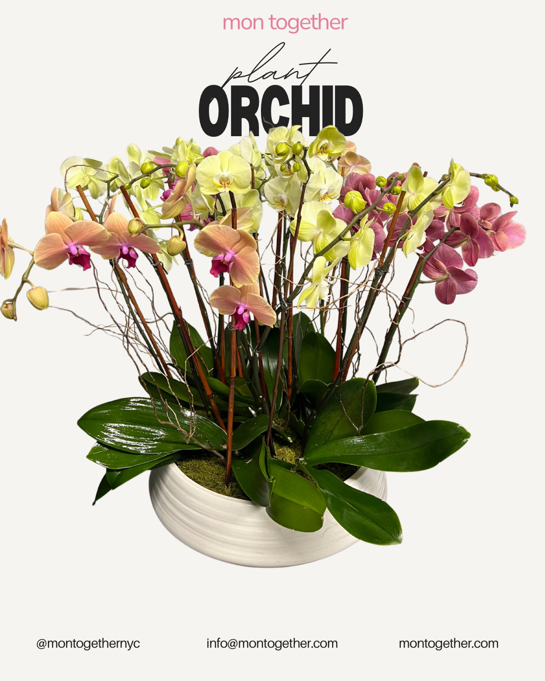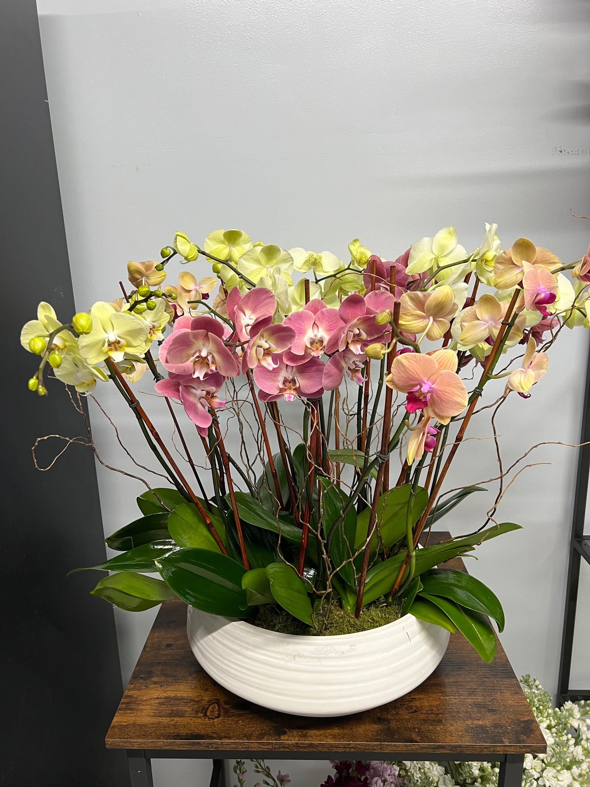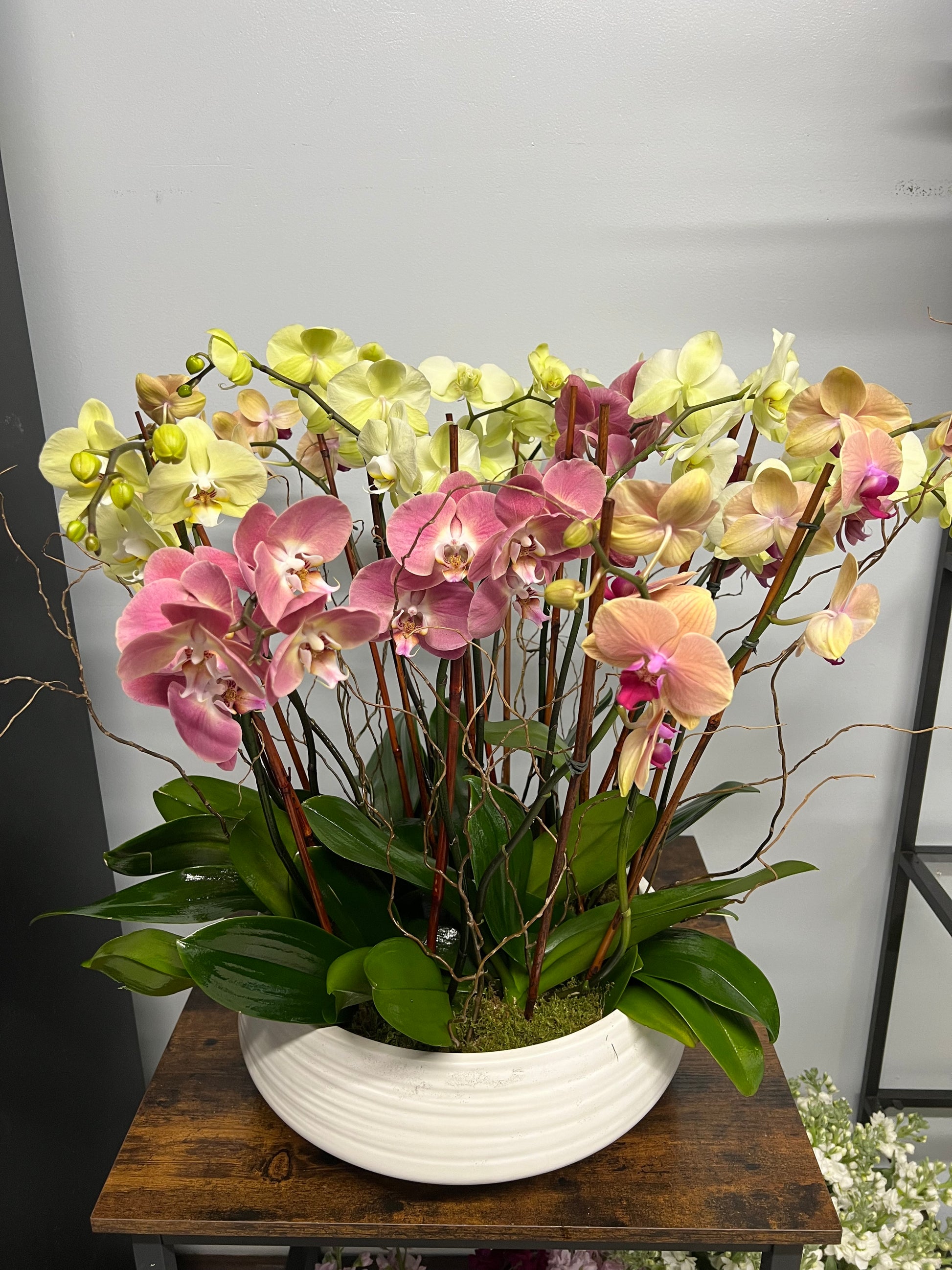 Please note: The images shown are from previous arrangements. Each orchid is unique, and while we strive to maintain the same style, slight variations may occur due to the natural beauty of flowers. Rest assured, each orchid is carefully hand-selected and designed to thrive.